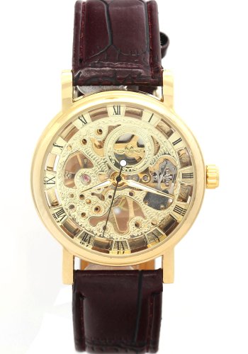 GAGNANT Unisex Eau de Luxe Mode résistants or cadran rond Montres Squelette main mécanique du vent Reviews